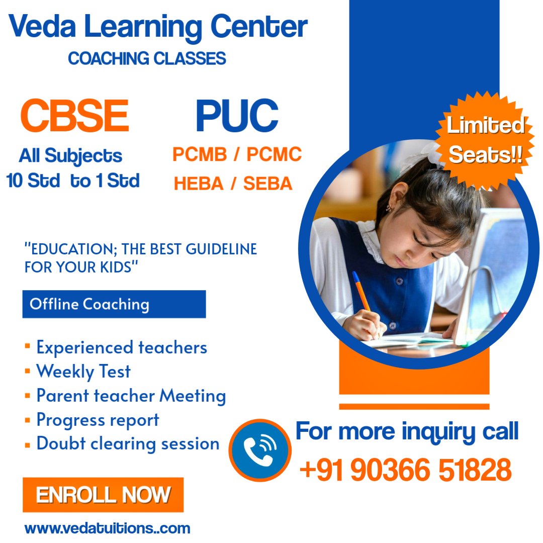 Veda Learning is a trusted tuition centre near me offering result-oriented CBSE and school tuitions for students living near Arekere Signal, Omkar Na…