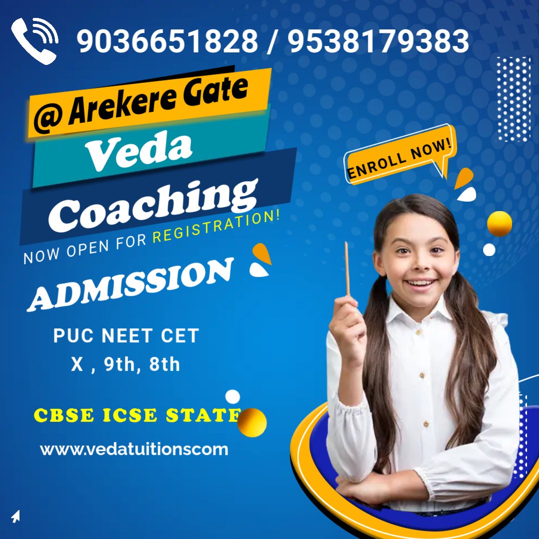 Veda Learning Centre Arekere Signal is a trusted tuition centre near Arekere Signal 560076, offering Class 8 tuition near me, Class 9 tuition near me, Class 10 tuition near me, PUC tuition near me and CET coaching near me. Best Class 10 CBSE tuition Arekere Signal, Class 9 maths tuition, Class 9 science tuition, Class 8 coaching, PUC coaching Bannerghatta Road, CET coaching centre 560076. Located at Arekere Signal Bannerghatta Road, close to Hulimavu, Gottigere, JP Nagar, BTM Layout. Parents searching for tuition centre near me, coaching centre near Arekere Signal, Class 10 tuition 560076, PUC tuition near Bannerghatta Road, CET coaching near me choose Veda Learning Centre for exams, tests and results.